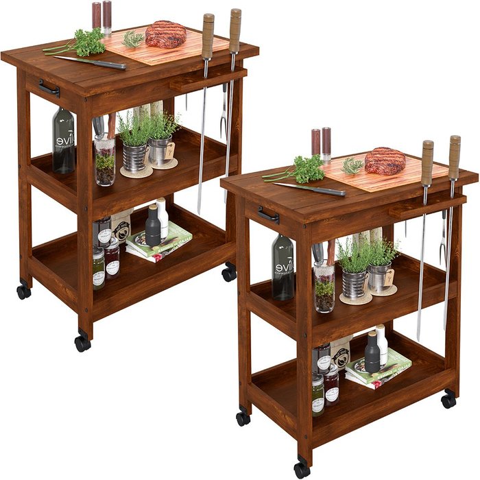 Kit 2 Carrinho De Churrasco Churrasqueira Com Tábua De Corte W02 Madeira Maciça Imbuia - Lyam Decor