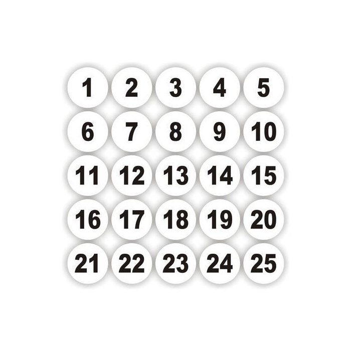 Kit 2 Cartelas Adesivos Numerados 1 A 25 Redondo Fundo Branco Medida 3cm Branco