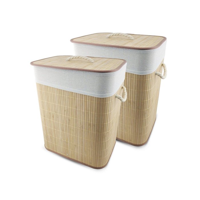 Kit 2 Cesto de Roupas com Tampa e Saco de Pano Removível Lavável de Bambu Claro Ecológico Mimo Style