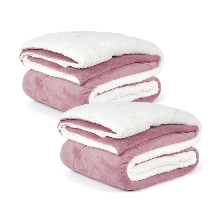 Kit 2 Cobertor Rosê Edredom Coberdrom Casal Queen Dupla Face Sherpa