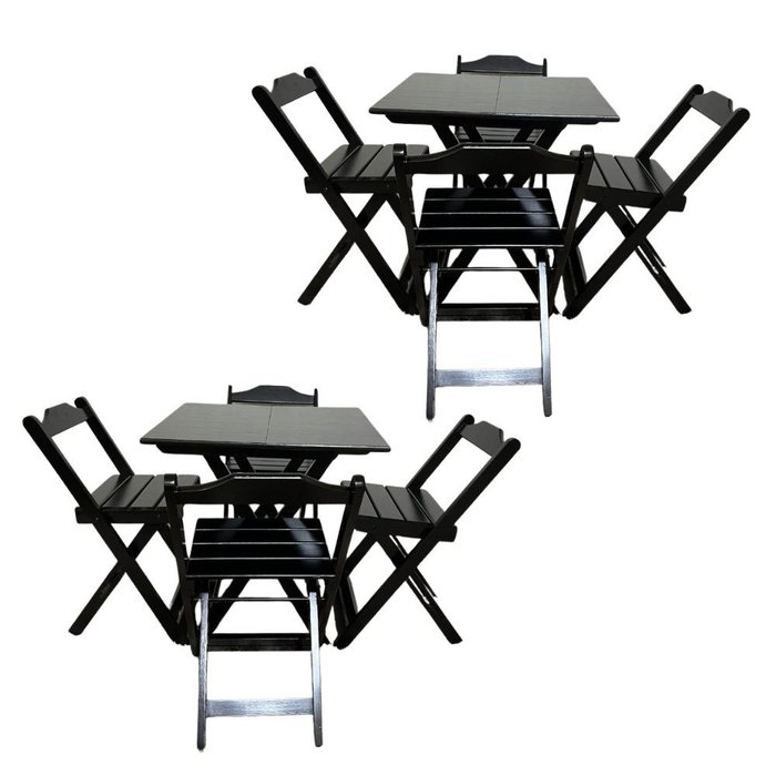 Kit 2 Conjunto Dobrável 70x70 Mesa com 4 Cadeiras Paraná Cor:preto