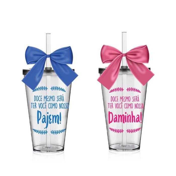 Kit 2 Copos Lembrancinha com Laço para Pajem e Daminha Acrílico