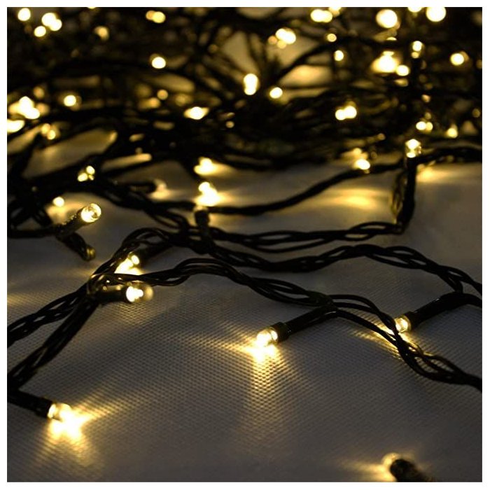 Cordão de Led Branco Quente 100 Lâmpadas Fixo Fio Verde