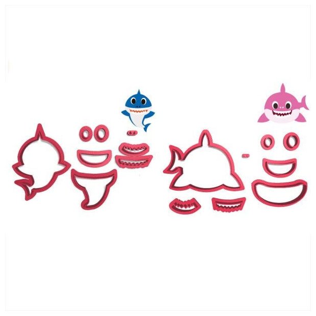 * Modelo: Kit 2 Cortadores Doce Impresso Pasta Festa Fundo do Mar Tubarão Bebê em pé e Nadando Deitado