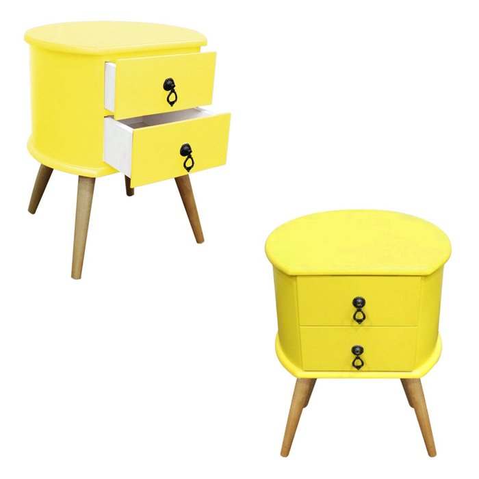 Kit 2 Criados Redondo em Madeira Maciça Retrô Pintura Laqueada Qualidade Premium B3 Móveis: Amarelo