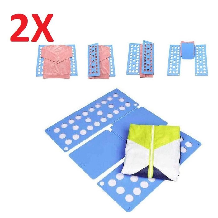 KIT 2 DOBRADOR DE CAMISETAS INFANTIL GABARITO DOBRA MACACOES ROUPAS RAPIDO CAMISA MOLDE PARA DOBRAR azul
