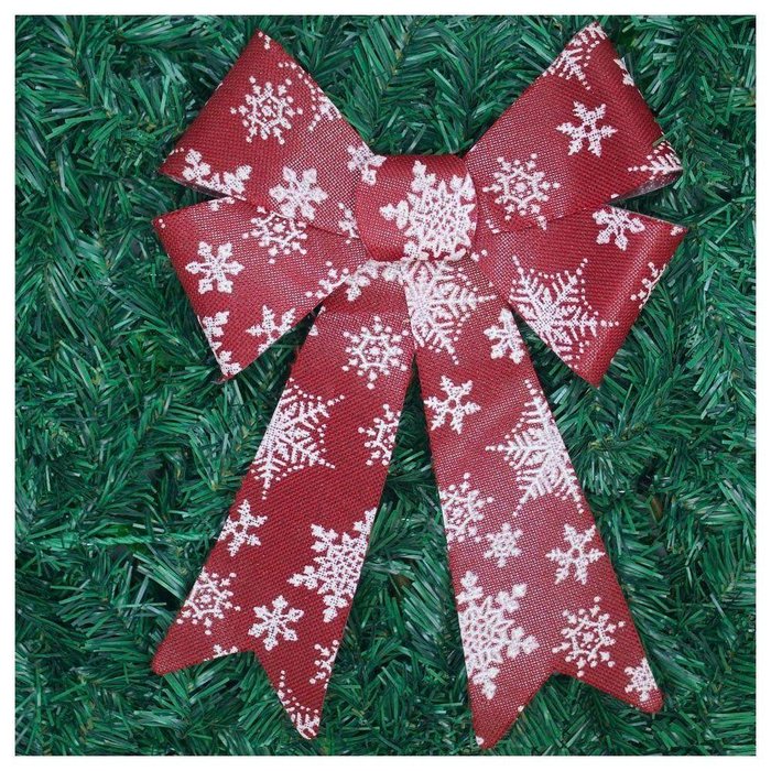 Kit 2 Enfeite Árvore Natal Laço Vermelho Flocos de Neve 32 Cm Vermelho