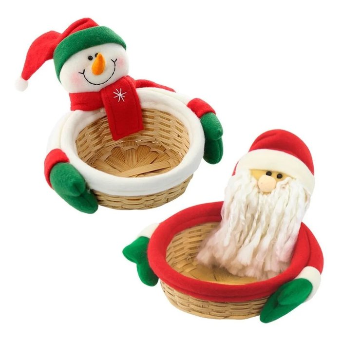 Kit 2 Enfeites De Natal Cesto Boneco De Neve E Papai Noel -