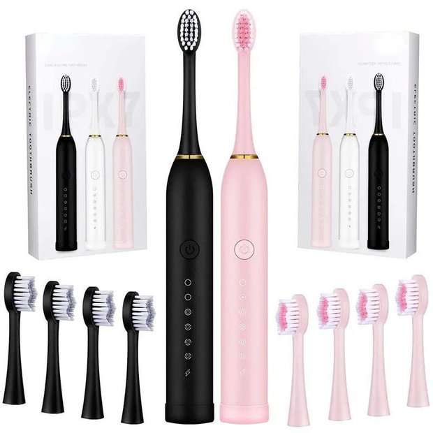 KIT 2 Escovas De Dente Elétrica Recarregável 6 Funções 8 Refil USB