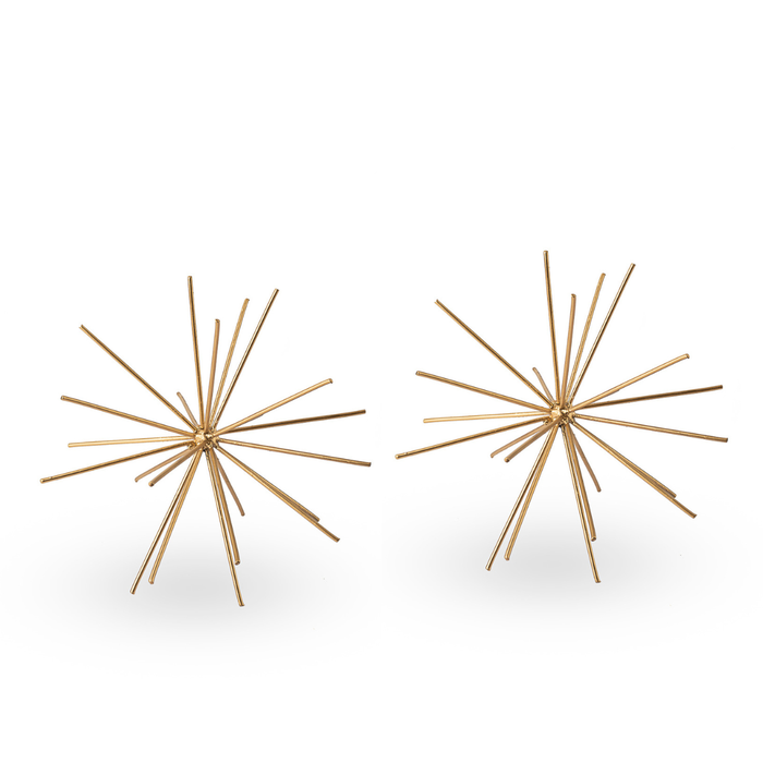 Kit 2 Escultura de Mesa Decorativa Ouriço De Ferro Pintura Dourado