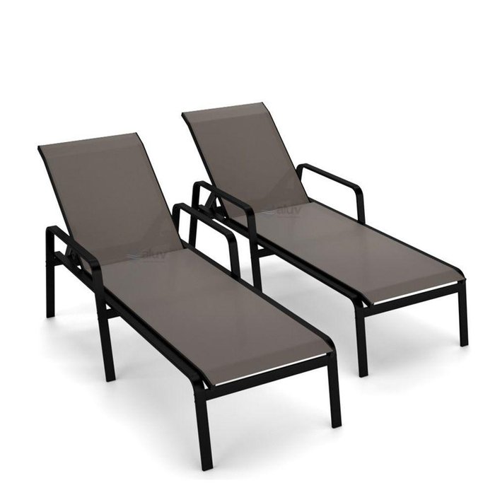 Kit 2 Espreguiçadeira Piscina Alumínio Preto Tela Fendi Preto