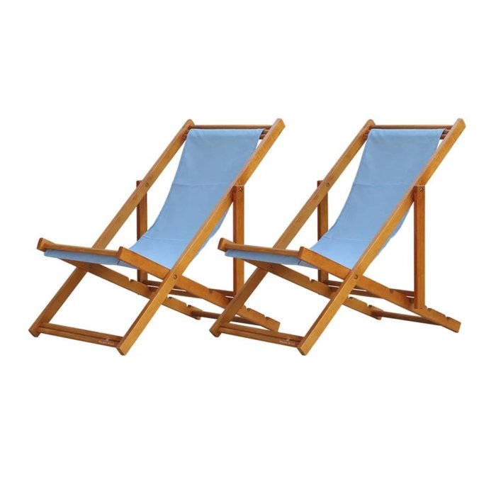 Kit 2 Espreguiçadeira Preguiçosa Dobrável sem Braço Envernizada Azul