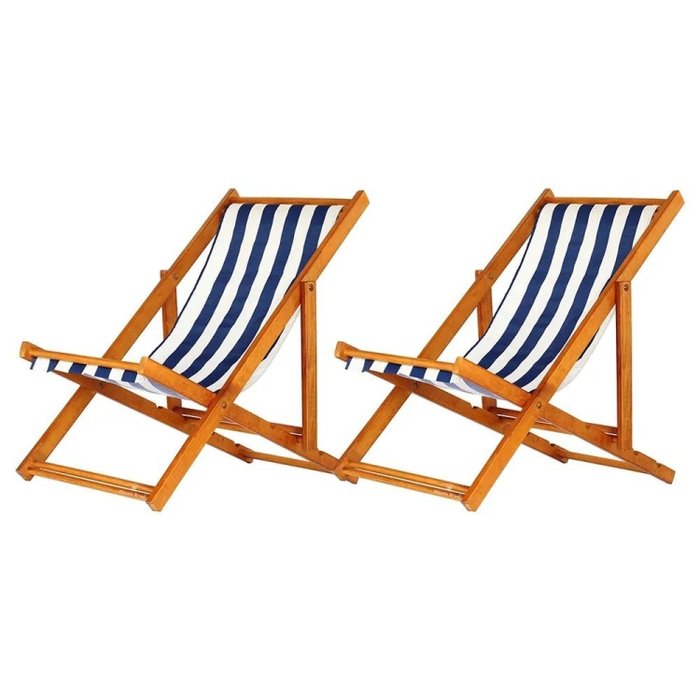 Kit 2 Espreguiçadeira Preguiçosa Dobrável sem Braço Envernizada Tecido List Azul e Branco