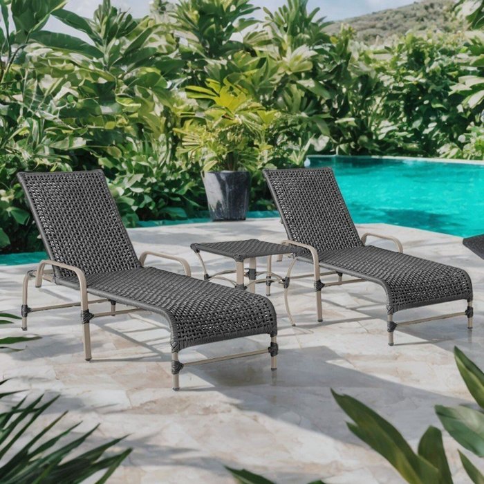 Kit 2 Espreguiçadeiras Corda Náutica e Mesa Garden em Alumínio para Piscina Edícula Catar Preto