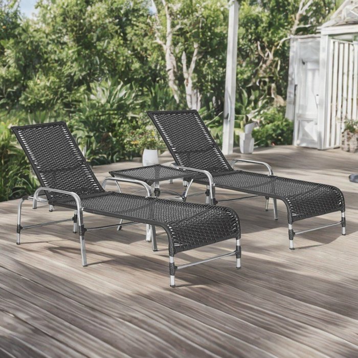 Kit 2 Espreguiçadeiras Mesa em Alumínio Piscina Jardim e Área Catar Tabaco