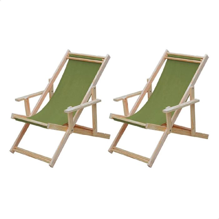 Kit 2 Espreguiçadeiras Preguiçosa Dobrável Madeira Maciça Natural com Tecido Verde Natural