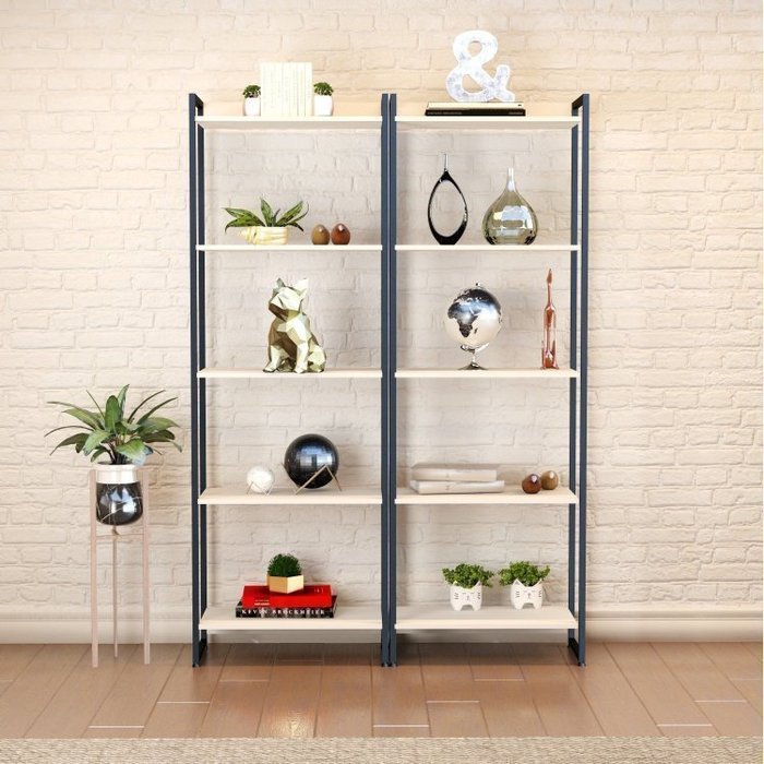 Kit 2 Estantes para Livros Altas Industrial Aço 5 Prateleiras 187cmx60cm Active Yescasa