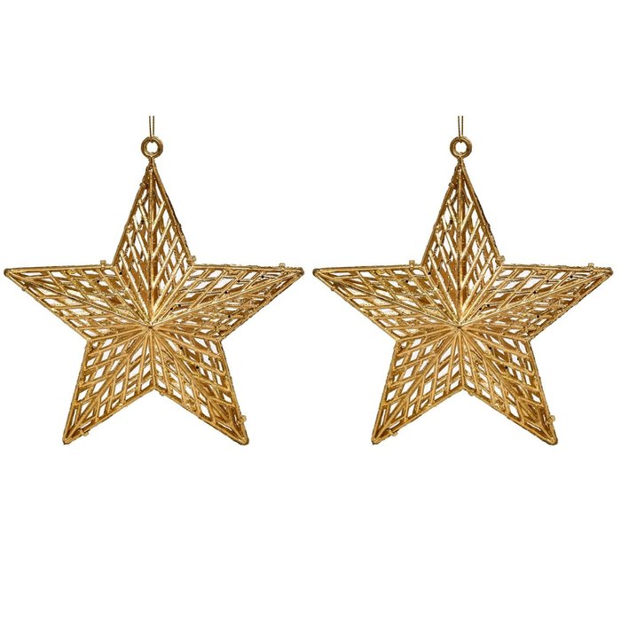 Kit 2 Estrelas Vazadas Dourado Metalizado Fosco 17x19cm - Magizi