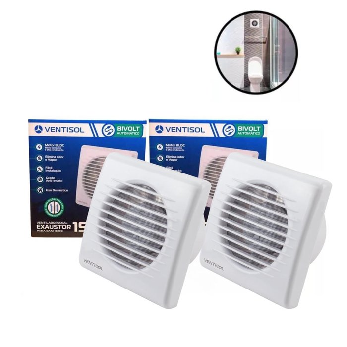 | Modelo | Kit 2 exaustor silencioso banheiro 15cm grade insetos bivolt |