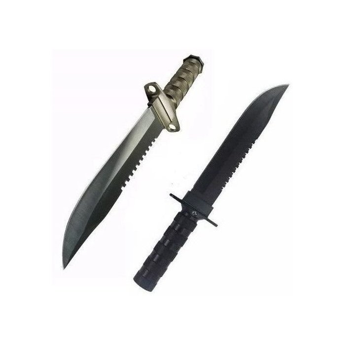 Kit 2 Facão Faca Rambo Tático Defesa Combate Militar Caça - 1 Preta + 1 Prata