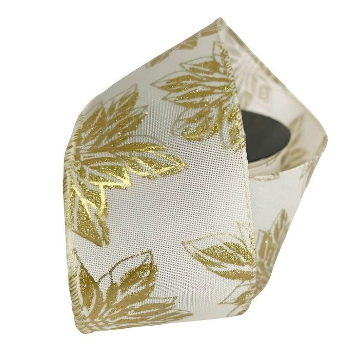 Kit 2 Fita Aramada Natal Flores Dourada Metálico 6,3cm X 914cm Dourado
