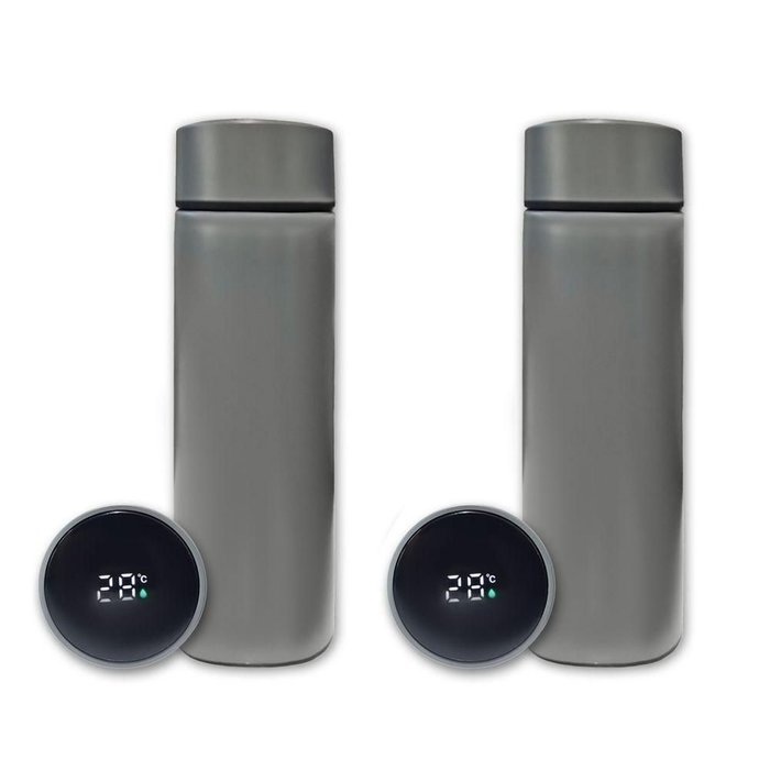 Kit 2 Garrafa Térmica Aço Inox Termômetro Digital Led 500ml Cinza Cinza