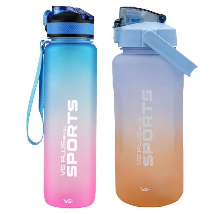 Kit 2 Garrafinha Squeeze Plástico 2L + 1L Academia Azul/Azul VG+ Azul