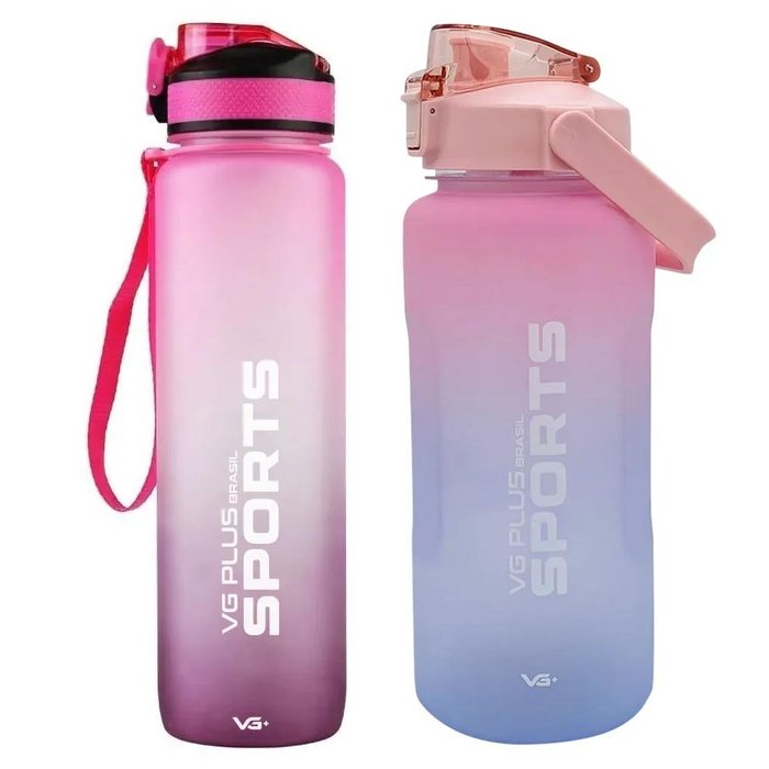 Kit 2 Garrafinha Squeeze Plástico 2L + 1L Academia Rosa/Rosa VG+ Rosa