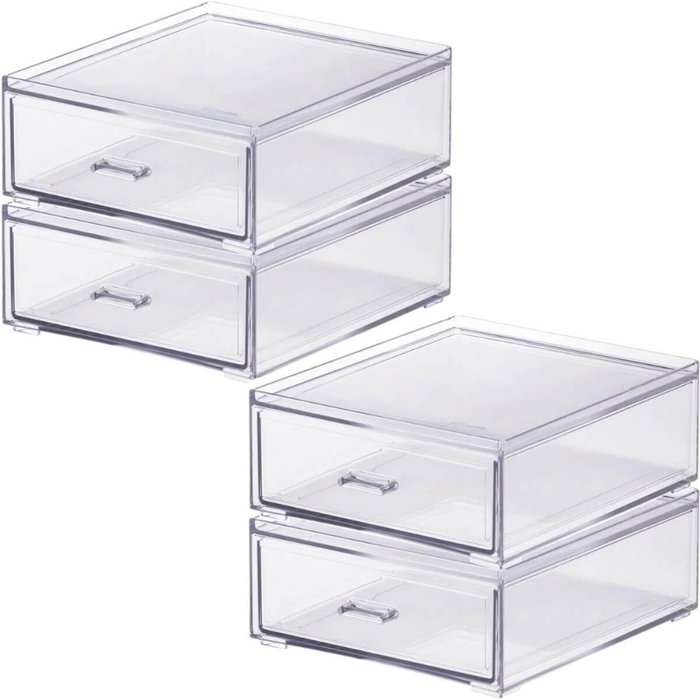 Transforme seu espaço com estes 2 gaveteiros duplo organizadores, a solução ideal para manter suas joias, esmaltes, maquiagens, agulhas, óculos de sol e muitos outros itens sempre em ordem e à vista. Com design moderno e sofisticado, essas gavetas são feitas de acrílico de alta qualidade, que proporciona durabilidade e resistência, além de conferir toque elegante ao seu ambiente. Com tamanho ideal, podem ser facilmente acomodadas em penteadeiras, mesas de maquiagem ou prateleiras, otimizando o espaço disponível.