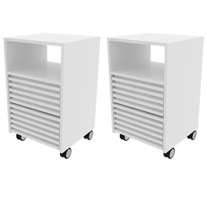 Kit 2 Gaveteiros com Ripado Rodízio 2 Gavetas 1 Nicho Me4175 Branco