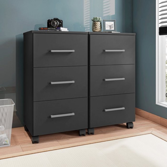 Kit 2 Gaveteiros com Rodízios 3 Gavetas Pietra Preto