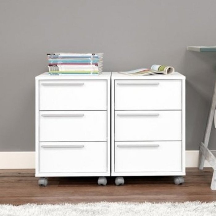 Kit 2 Gaveteiros para Escritório com Rodízio com 3 Gavetas Maia Branco
