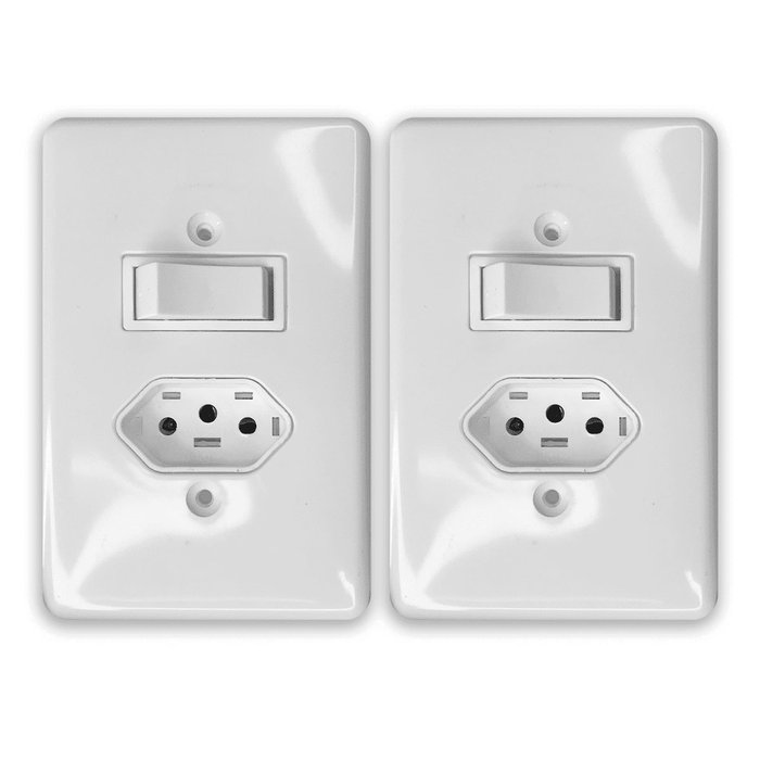 Kit 2 Interruptor Simples 6a com Tomada 2p+t 20a 250v Ilumi Cor:branco branco