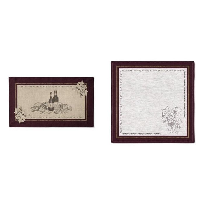 Kit 2 Jogo Americano + 2 Guardanapos + 2 Argolas - Uvas Parreira Vinho Vinho/Branco