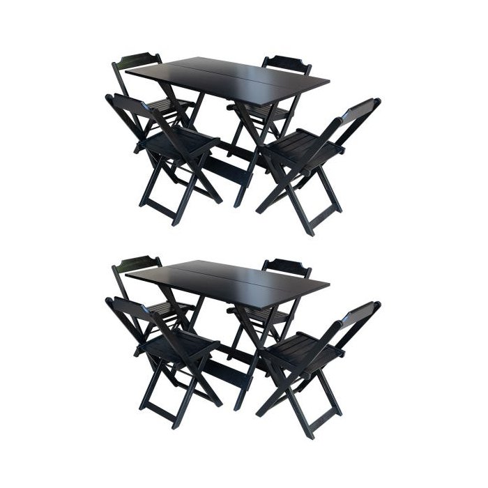 Kit 2 Jogos de Mesa com 4 Cadeiras de Madeira Dobrável 120x70 para Bar e Restaurante - Preto Preto