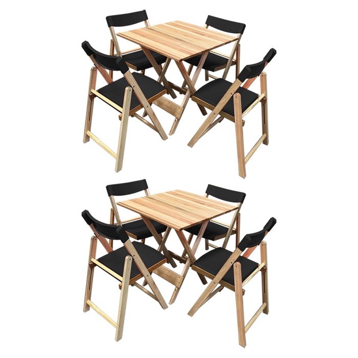 Kit 2 Jogos de Mesa Dobrável de Madeira Assento e Encosto Preto com 4 Cadeiras