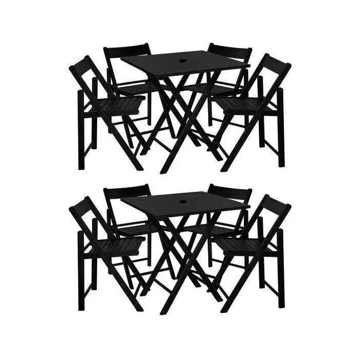 Kit 2 Jogos Mesa com 4 Cadeiras de Madeira Dobravel Classic Beerblack com Suporte para Ombrelone