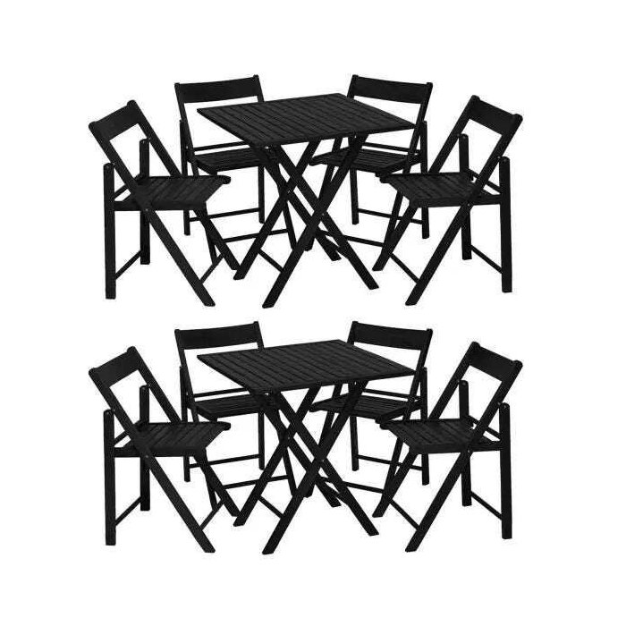 Kit 2 Jogos Mesa Com 4 Cadeiras De Madeira Dobravel Gourmet Beer Preto/Black