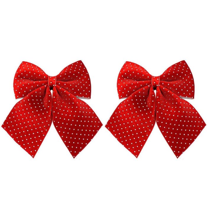 -02 unidades Laço Decorativo Natal Espuma Veludo Vinho Decorado Bolinhas Prata 20x24cm – Magizi