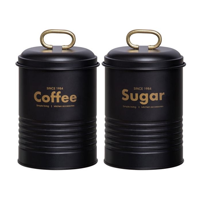 Kit 2 Latas Porta Condimentos Industrial Pote Açúcar e Café Preto Fosco E Dourado Yoi Preto