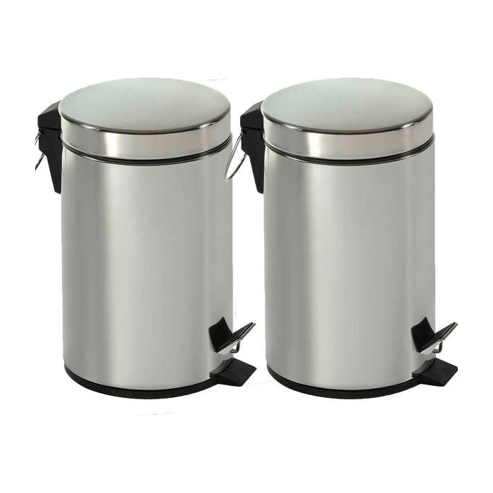Kit 2 Lixeira Inox Banheiro Cozinha Pedal E Balde 5 Litros