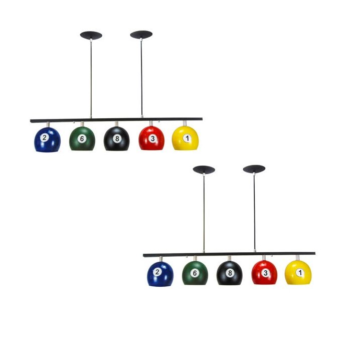Lustre Sinuca/Bola de Bilhar/Snooker balls. Uma novidade com criatividade e inovação.Com cores e semelhança com bolas de Snooker pintadas nas cores originais .Simplesmente DIFERENTE do que o mercado oferece!!!!A luminária vai pronta para instalar.Caracteristicas:- 12 Meia Bola (coloridas com Numeradas) em 2 trilho (AÇO INOX) de 1 metro;- 12 Lâmpadas - Dimensões: 1,17 mts de altura por 1,10 mts de largura ;- 4 Canopla individual;- Cabo de fio 120cm cada;- Produto de alumínio com pintura epóxi eletrostática de alta resistência e durabilidade;- Escolha a temperatura da cor que desejar;- Bivolt;- Pronto para instalação;