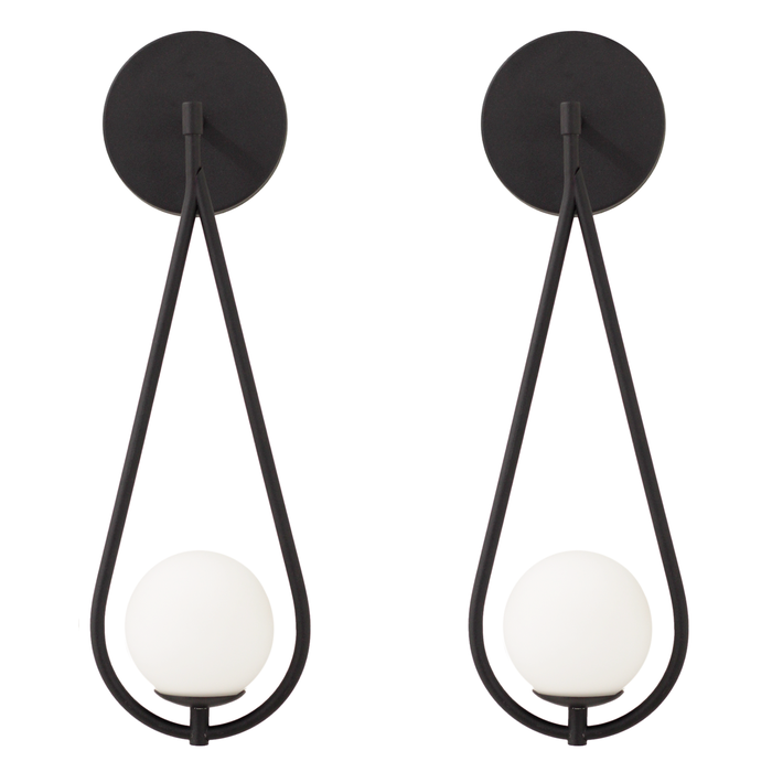 Kit 2 Luminárias Arandela Parede Gota Globo Vidro Sala Preto Preto