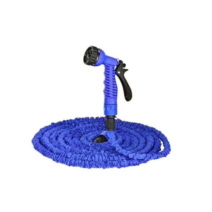 Kit 2 Mangueiras Magica 15 Metros Com Esguicho E Conectores - Fixxar + Toalha Mágica Mangueira Magica. Compacta, flexível e super prática, a mangueira Magica alcança até 15 metros de comprimento de acordo com a pressão da água assim que ligada. A mangueira amplia 3x o seu tamanho e, ao desligar a água, ela encolherá em segundos, cabendo na palma da sua mão. É uma super mangueira flexível. Ela vem ainda com gatilho com 07 tipos de jatos, não torce, não dobra e não interrompe a água e é até 5x mais leve que uma mangueira convencional. Diferencial: Material: O material utilizado neste produto atende perfeitamente as variações climáticas do nosso país, em qualquer estação do ano, não ressecando no inverno e não derretendo no verão. As outras importadas não suportam essa variação climática, pois contem menos Látex em sua composição. Aumenta 3x o tamanho assim que ligado a mangueira a água Não Dobra facilmente, promovendo sempre a pressão continua da agua. O Gatilho com 07 posições de esguicho possui engate rápido em plástico além de diversas funções: Cone, Reto, Névoa, Plano, Vertical e Chuveiro. É só escolher o jato ideal e deixar na posição indicada pela seta que a sua mangueira estará pronto para todas as suas necessidades de uso com muita praticidade. Informações técnicas:- Cor: Azul