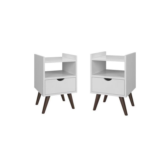 Kit 2 Mesa de Cabeceira Alice Prado Móveis Varias Cores:Branco Branco