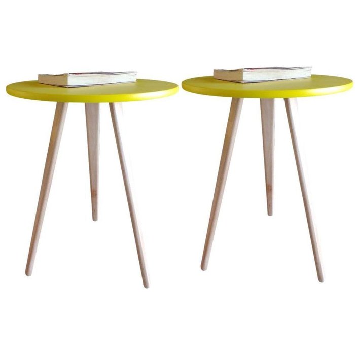 Kit 2 Mesa Redonda Lateral Canto E Apoio Sala Quarto 56 Cm Cor:amarelo