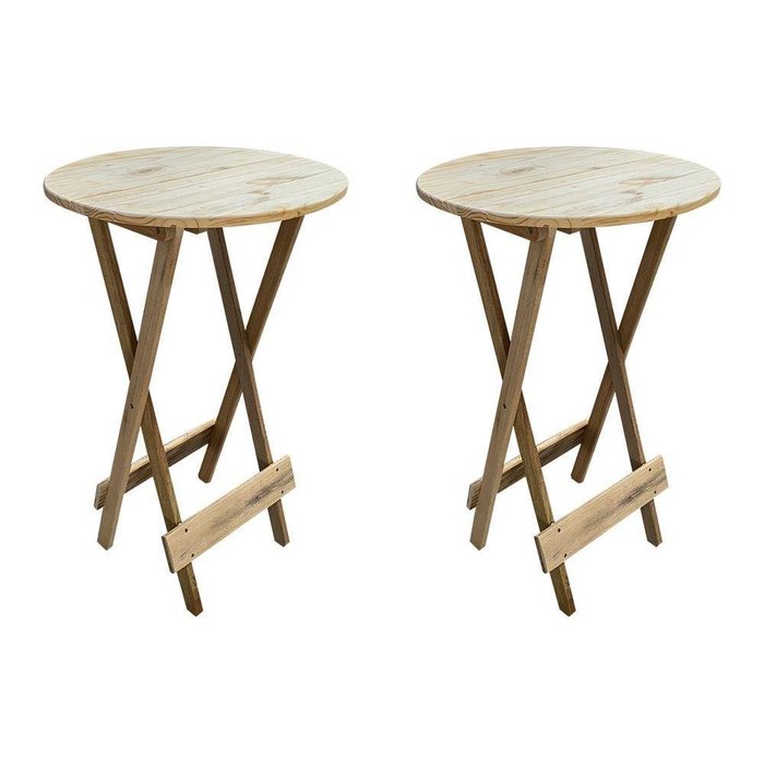 Kit 2 Mesas Bistrô De Madeira Dobrável Para Restaurante - Sem Pintura / Crua
