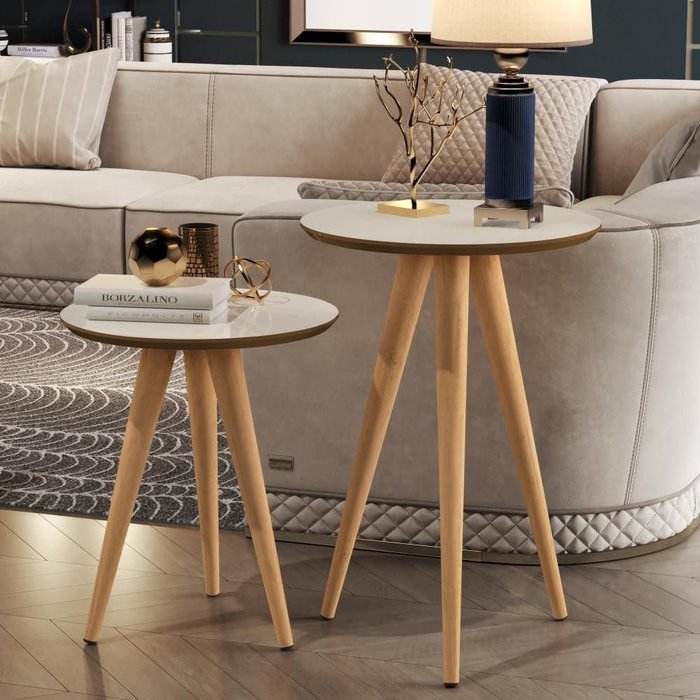 Kit 2 Mesas de Apoio e Lateral Sofá para Sala Maju Retrô Decor:off White