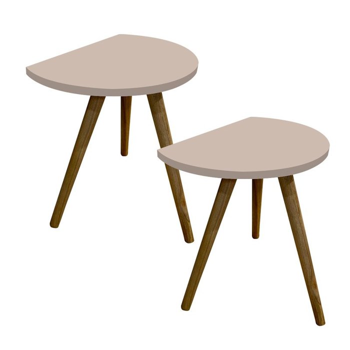 Kit 2 Mesas de Apoio Redonda Nuova Tripé Palito Retrô - de Parede 40cm:Nude Vel
