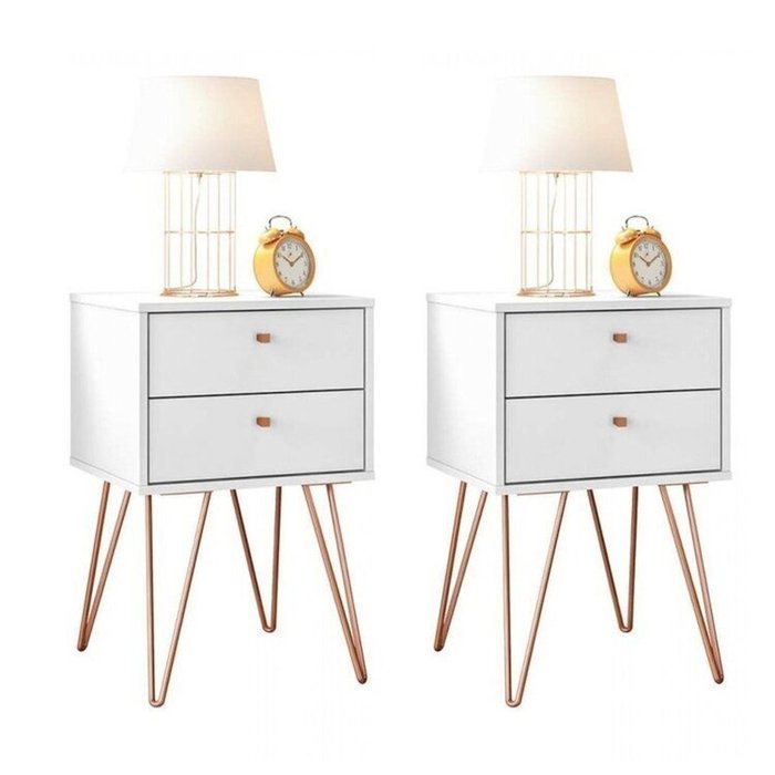 Kit 2 Mesas de Cabeceira 2 Gavetas Retro Bled Branco